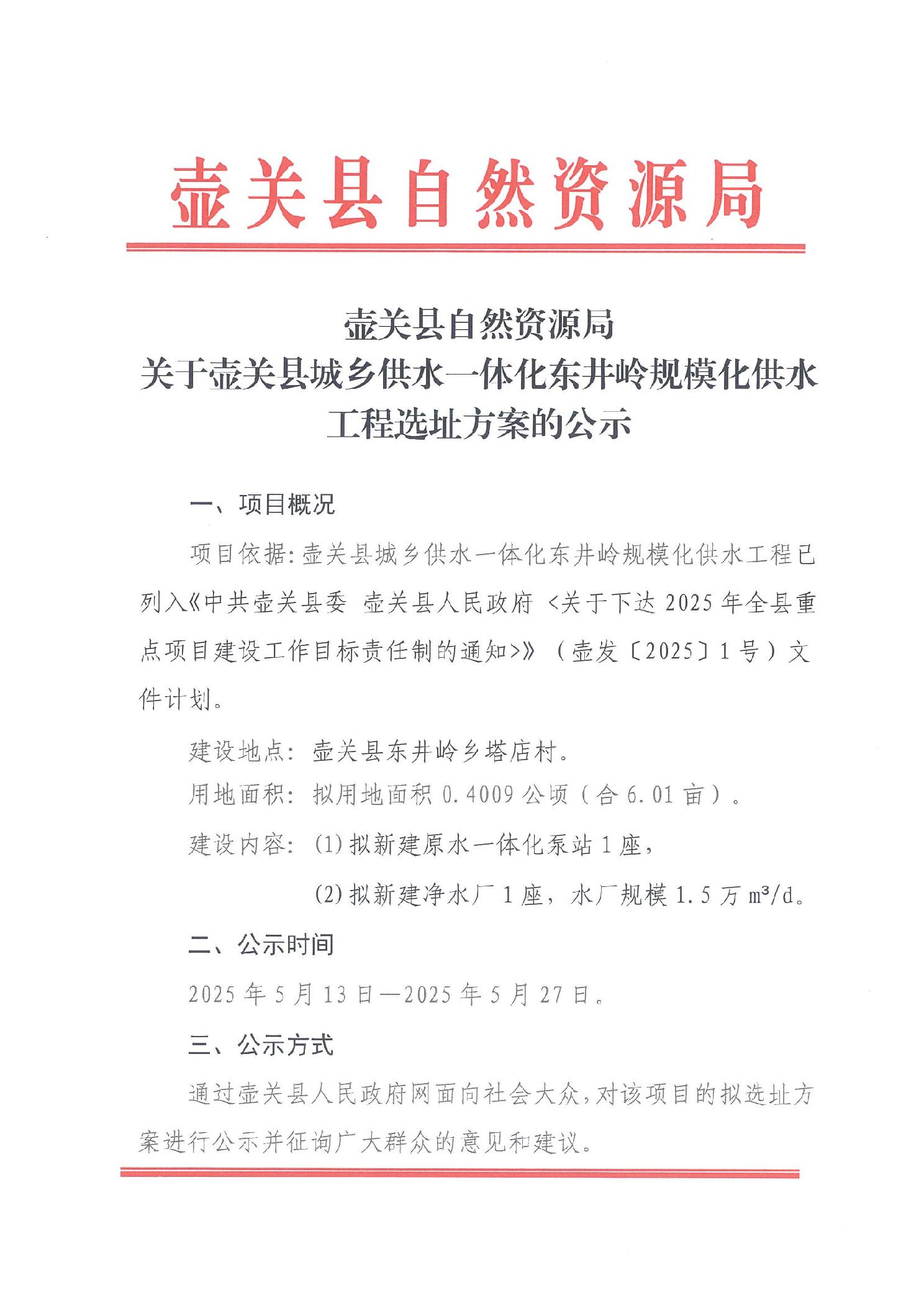 | 標(biāo)題:壺關(guān)縣城鄉(xiāng)供水一體化東井嶺規(guī)模化供水工程選址方案 | |